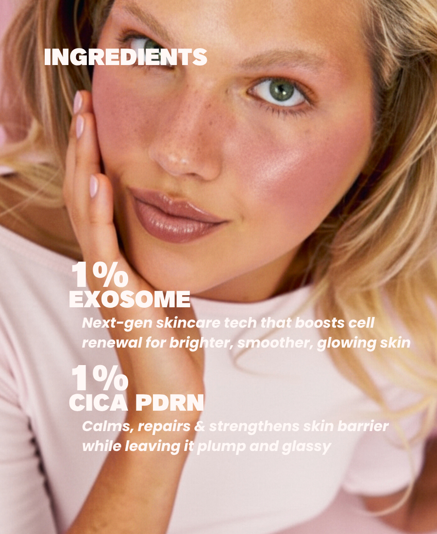 hydration, calming redness, supporting skin regeneration, and boosting glow by morning. It’s powered by exosomes, Cica, PDRN, and skin-brightening actives that help your skin reset overnight. -